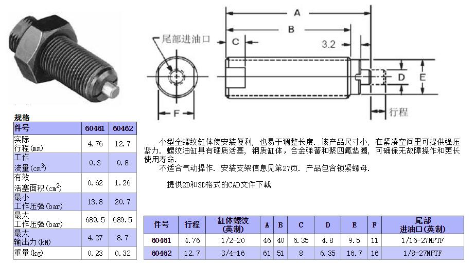 小型螺紋油缸-管接式