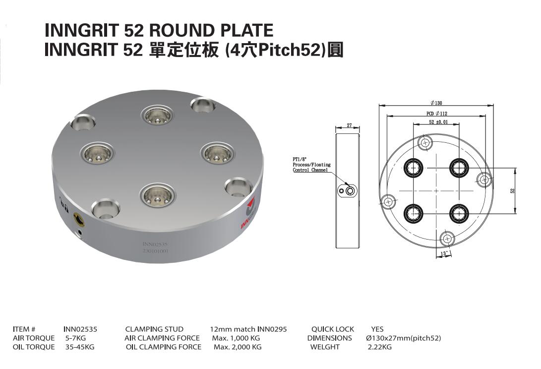 INN02535 單定位板 (4穴Pitch52)圓