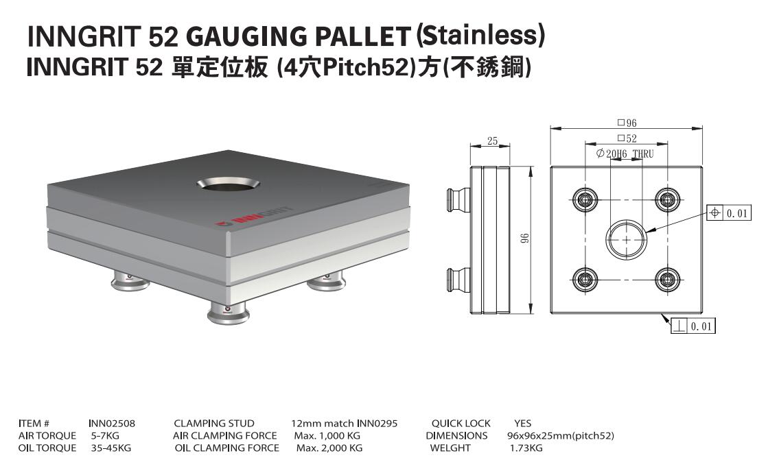 INN02508 單定位板 (4穴Pitch52)方(不銹鋼)